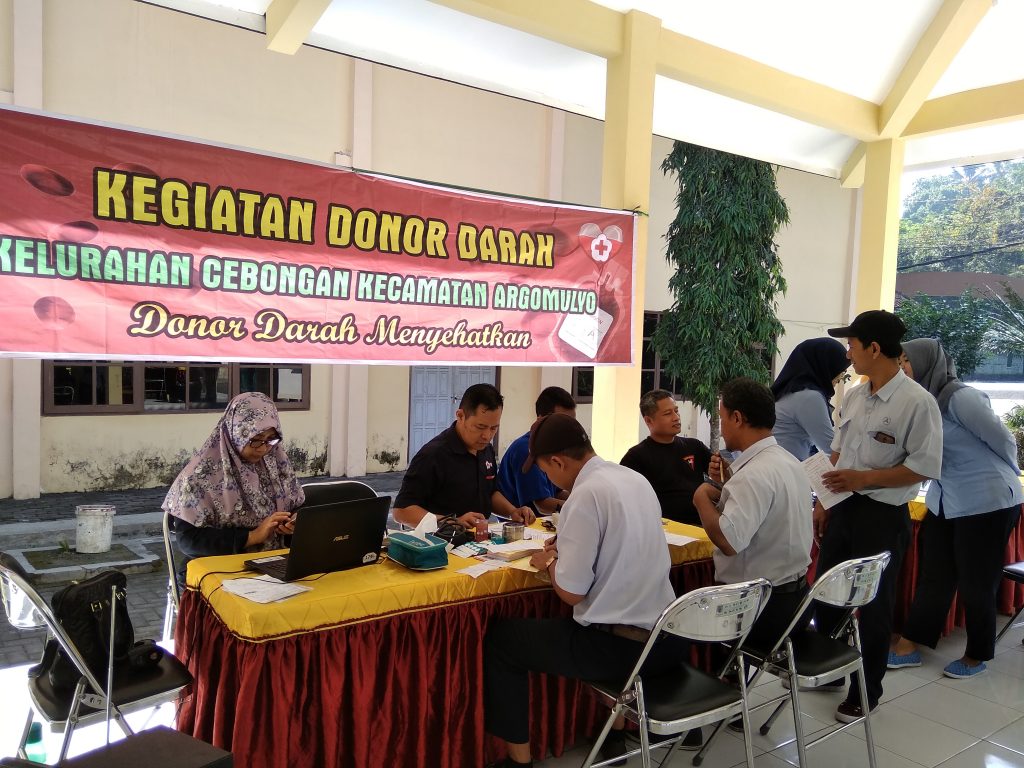 Isep-isep, Kel. Cebongan – Bekerja sama dengan PMI Kota Salatiga, Kelurahan Cebongan melalui seksi Sosial dan Pemberdayaan Masyarakat melaksanakan kegiatan Donor Darah yang kedua kalinya di Tahun Anggaran 2018. Setelah sebelumnya dilaksanakan donor darah pertama pada bulan Maret yang lalu, bertempat di pendopo Kelurahan Cebongan, pada hari Selasa tanggal 3 Juli 2018 dilaksanakan rangkaian kegiatan Donor Darah dengan dibuka oleh Lurah Cebongan, Drs. Sururi.